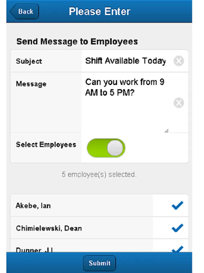 With Manager Mobile, you can receive and respond to real-time notifications about employee call-ins and no-shows. You can also review, adjust, and approve employee time cards; manage leave requests and schedules; and contact employees directly via mobile, voice, or text options.