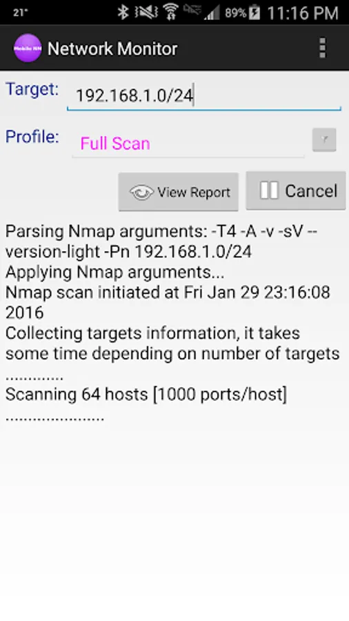 - Currently it supports most of functionalities as nmap does except some features that need root privilege and no scripting support yet.