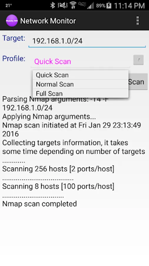 - It comes with some predefined profile settings to jump start. You can also define your own nmap parameters and save them as custom profiles for your convenience.