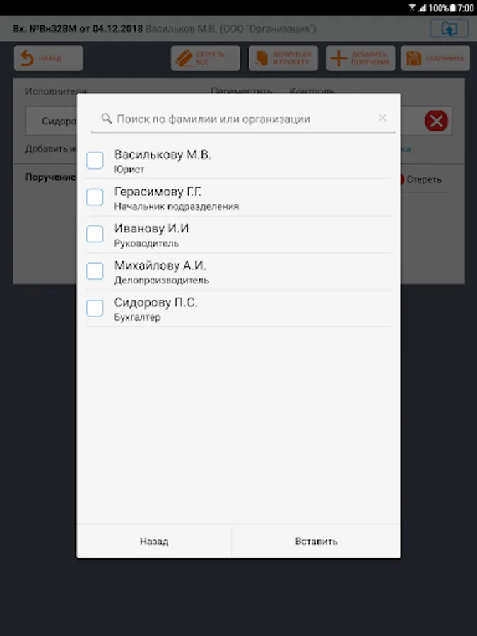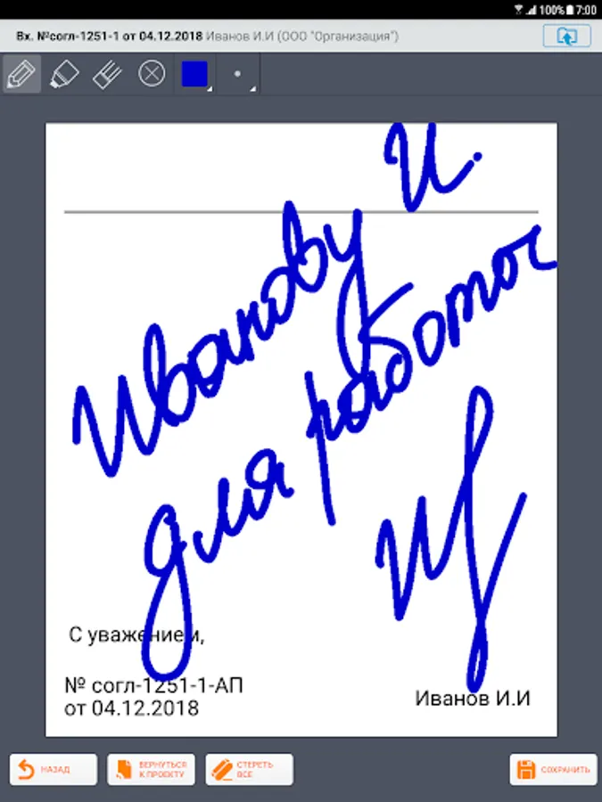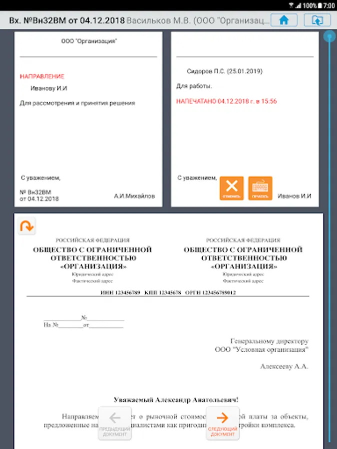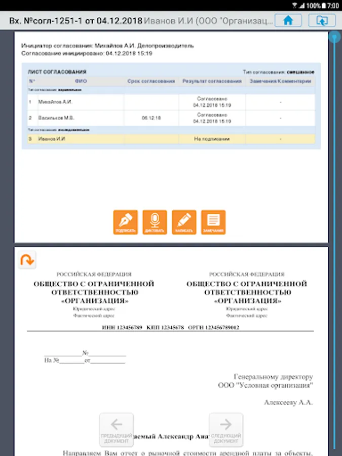 The application is designed for remote work with documents in the electronic document management system, "Practice." The application allows you to quickly review documents with the possibility of voice, graphics and text input assignments.