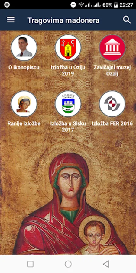 The icons "Traces of the Madonna" show the motives of Croatian Catholic heritage between the 12th and 16th centuries. The different stylistic periods and rich expression of numerous art workshops of that time vividly testify to the importance of the Adriatic area as a key hub of culture. The exhibited icons originate from the churches and temples of cities on the Adriatic coast. The main motives are Mary and Jesus - Madonna and child.