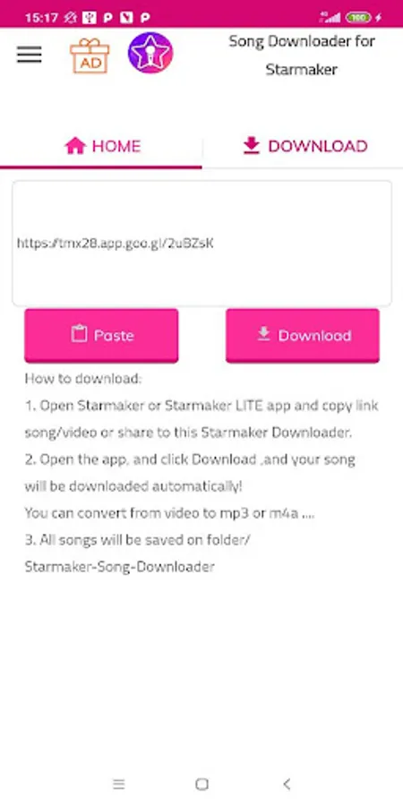 1. Open Starmaker app and copy link song/video or share to this Starmaker Downloader.