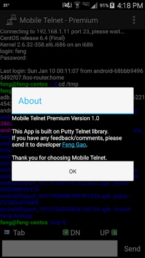 This is paid Android Telnet app which is based on opensource Putty Telnet as its backend library. I hope that the tool will make it convenient for users when they come to work on some simple stuff on remote machines.