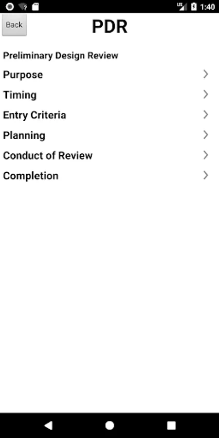 This is a good app for those just getting into systems engineering. I recommend making the acronym section a little easier to navigate. Perhaps adding in alphabetical links to each acronym so people will not have to scroll so long to find a certain acronym. Another note, how about considering adding interactive reviews/quizzes in between reading to engage app users. Cheers!