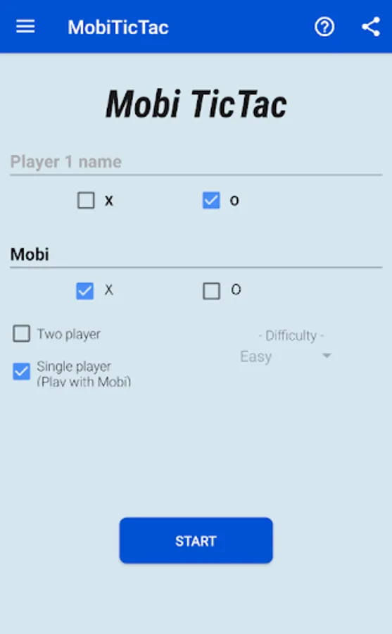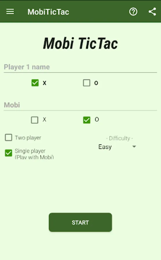 * Single Player (play with Mobibot) or Two player (on same device) modes.