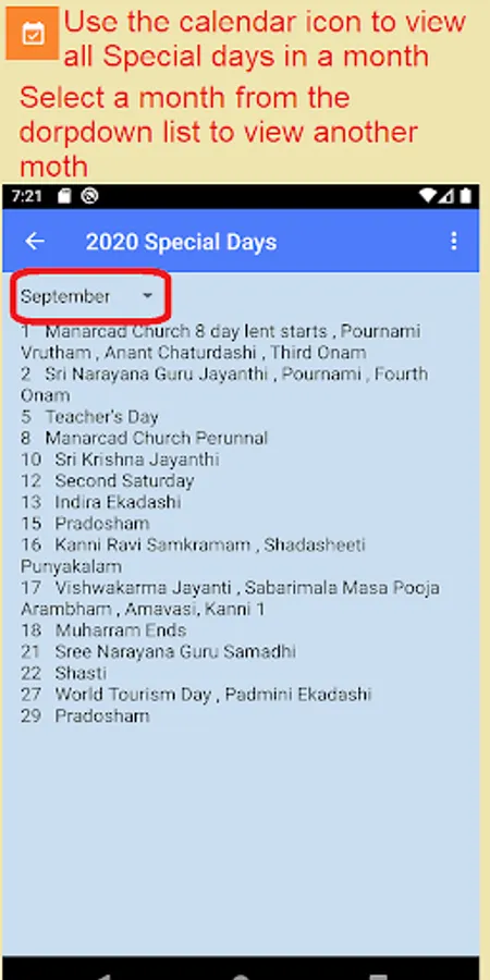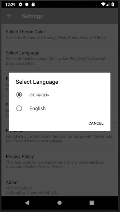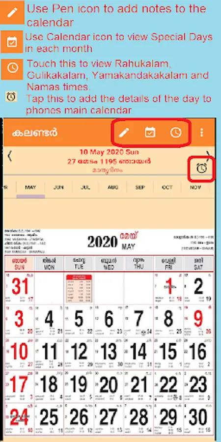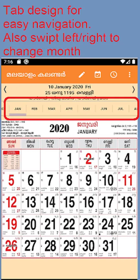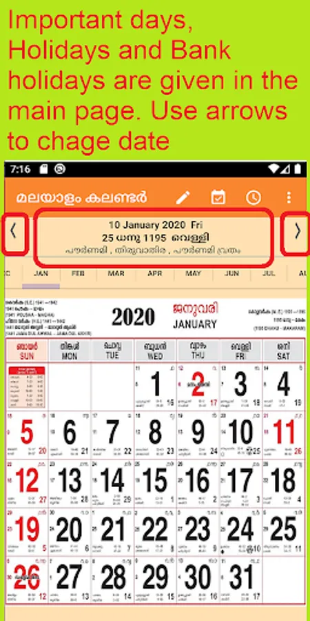 Small size compared to most of the Malayalam Calendars in PlayStore.