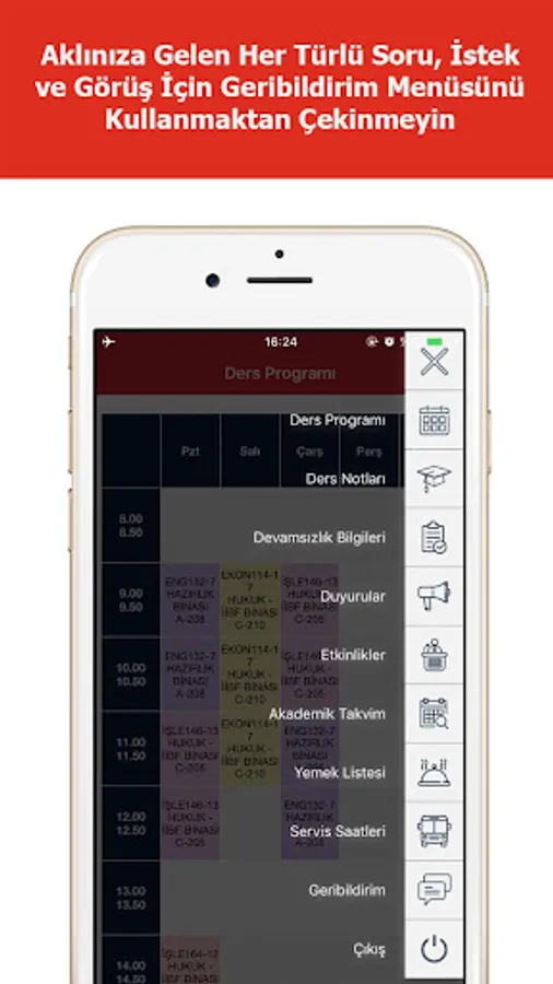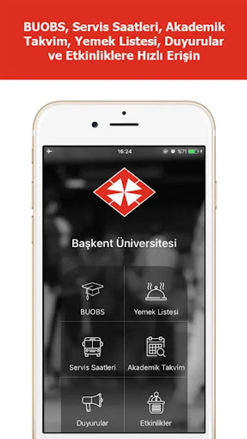 Quickly access your "Course Schedule, Course Notes, Absence Information, Announcement, Activity, Service Hours, Menu and Academic Calendar" with the official mobile application of Başkent University.