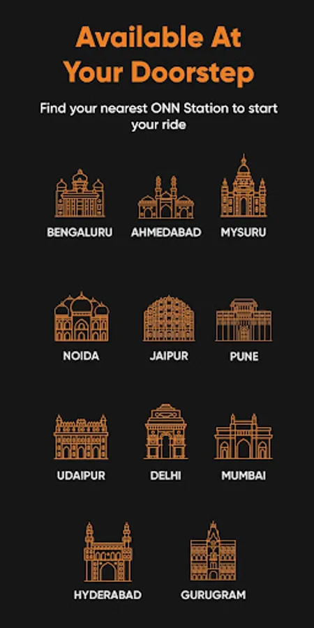 ONN Bikes is bringing the future of mobility to meet the needs of young, growing India. We are building a technology-driven mobility platform where Indians of all ages and walks of life can find reliable, quality, affordable solutions for all their daily commute needs. From serving micro-mobility solutions with our new electric bike fleet, and longer commutes from our wildly popular scooter and motorcycle fleet, we are bridging gaps in public transport and bringing you more modern and sustainable urban mobility solutions every day to an ONN Station near you.