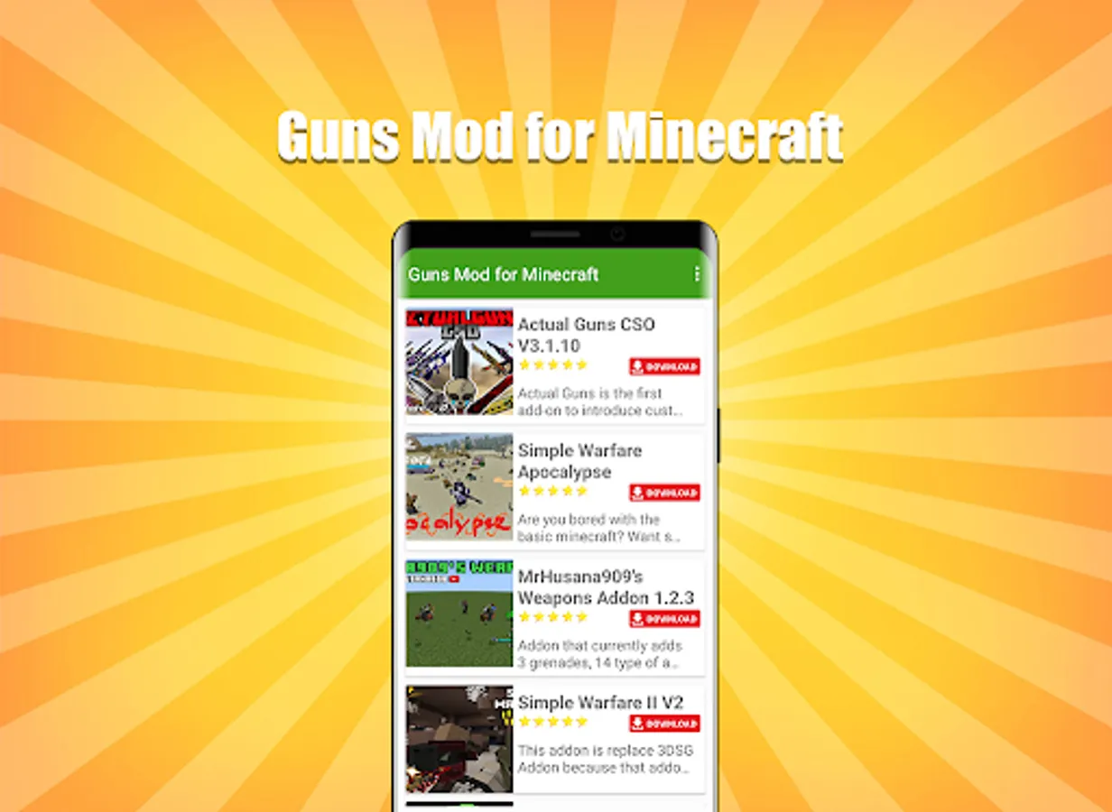Guns Mod for Minecraft Pocket Edition is an application that give you the easiest way to install Actual Guns Add-on into your Minecraft world. With our 1-Click installer, you'll be able to download & install Minecraft Mods, Addons, Maps, Texture Packs, or Skins in only 1 single tap!