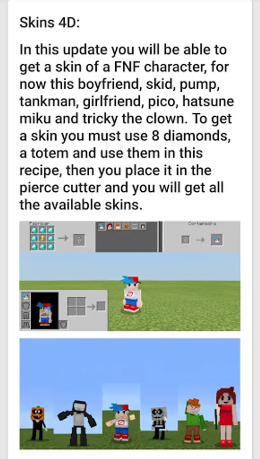 Surprise your friends with FNF MOD for minecraft ! If you are looking for the best mob skins fighting , then FNF MOD for minecraft is for you. share with friends download skins and have fun in multiplayer mode.
