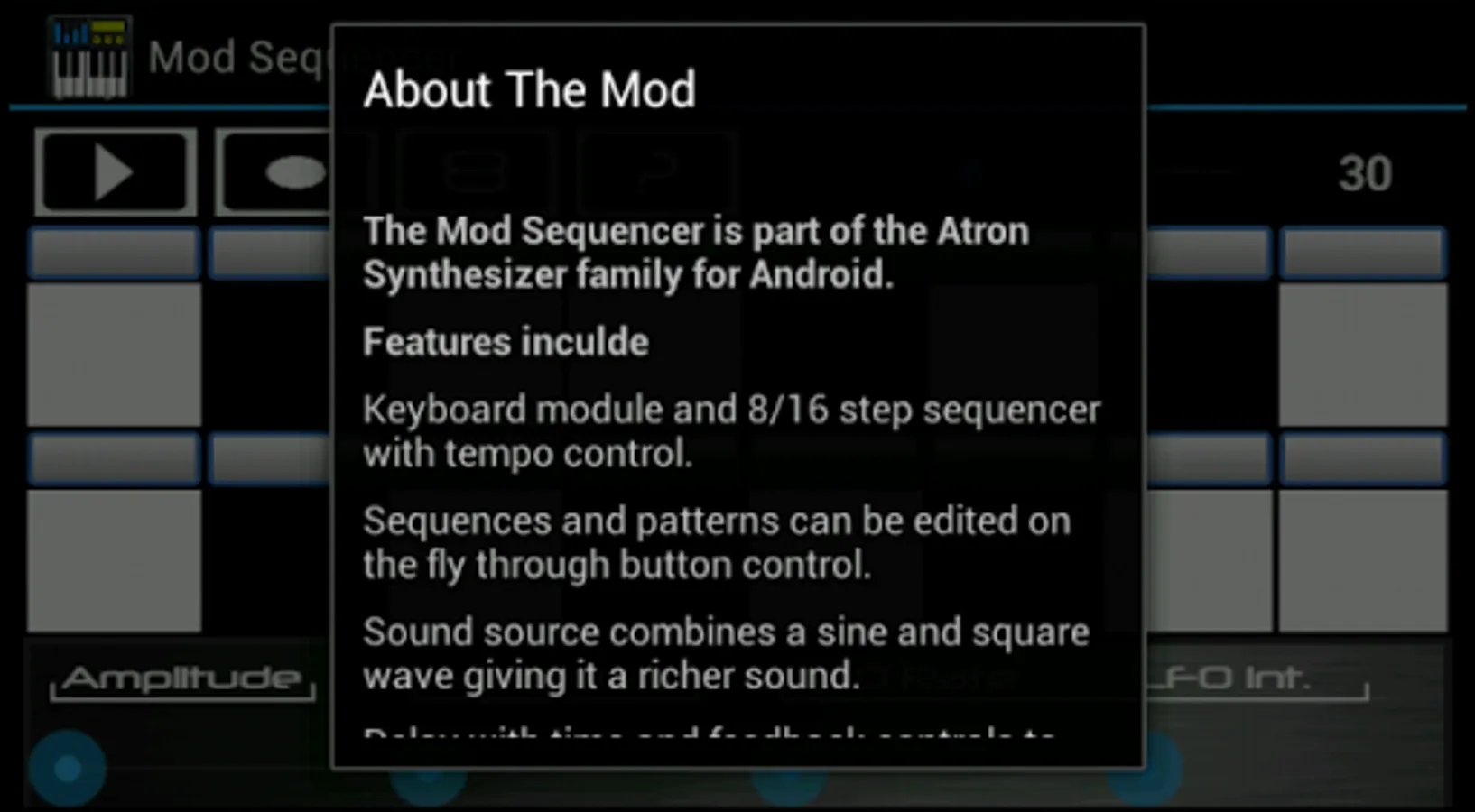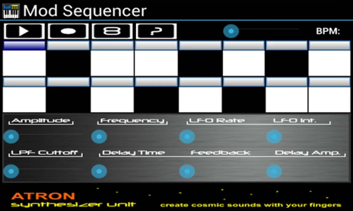 The Mod Sequencer is part of the ATron Synthesizer family exclusive to Android. It now features not only a keyboard module but also an 8/16 step sequencer with tempo control.