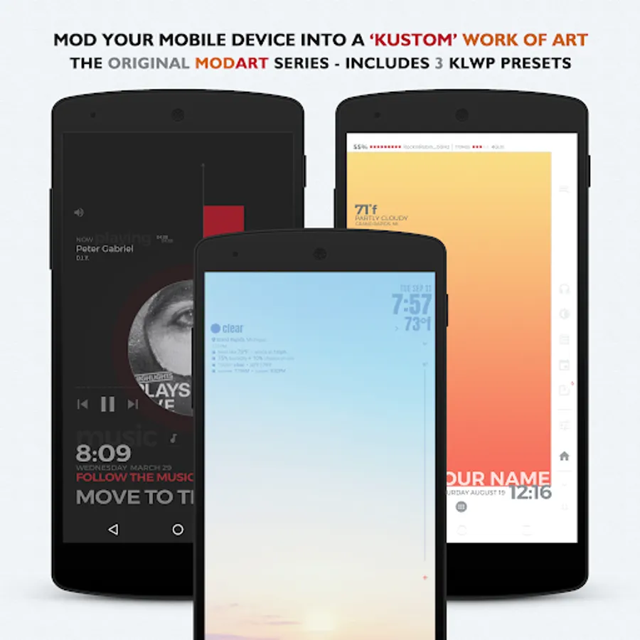 • Open KLWP: Select > Menu Icon (top left) > Load Preset > Installed > ModArt