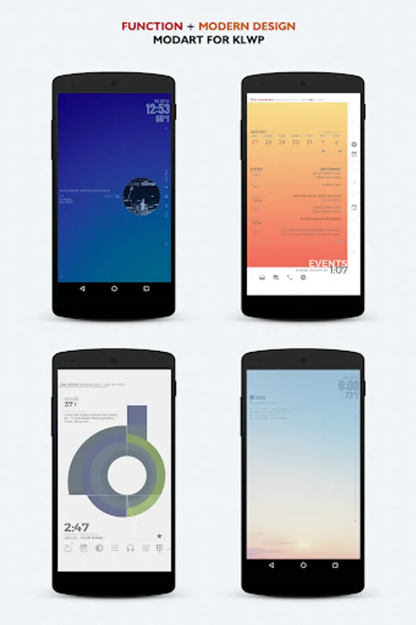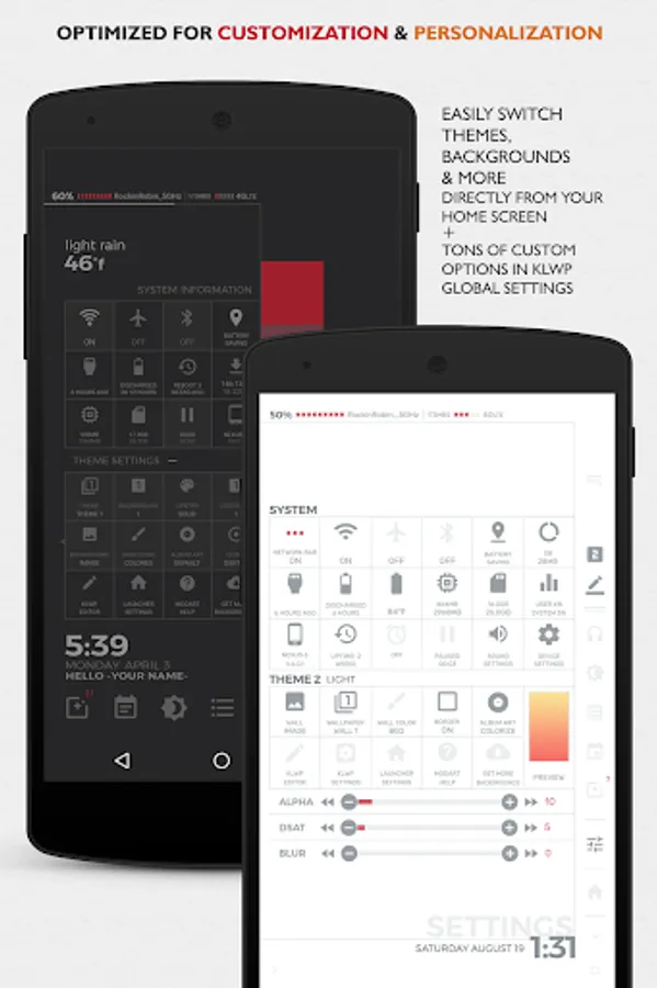 • Extensive customization / personalization settings in KLWP GLOBALS and Items Settings