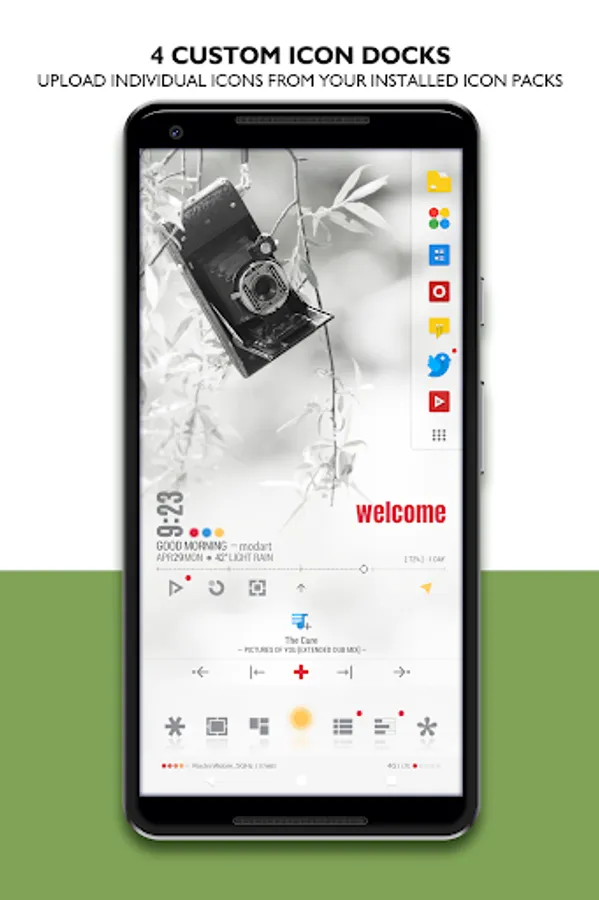 ● 4 Custom Docks: upload individual App icons from your installed icon packs + notification & drawer options