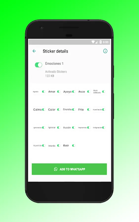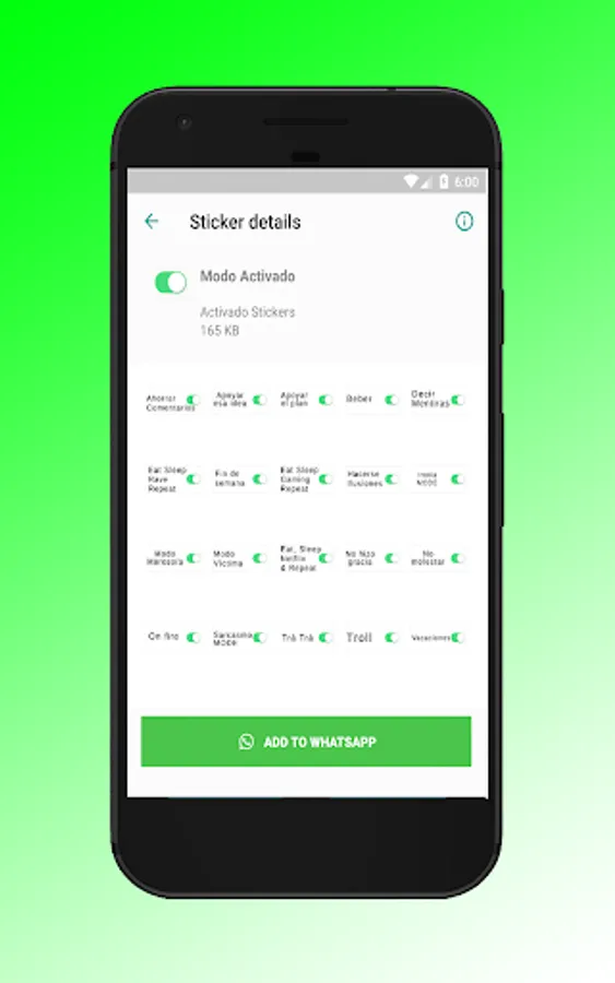 The application contains new stickers that simulate the activation of a parameter on the phone.