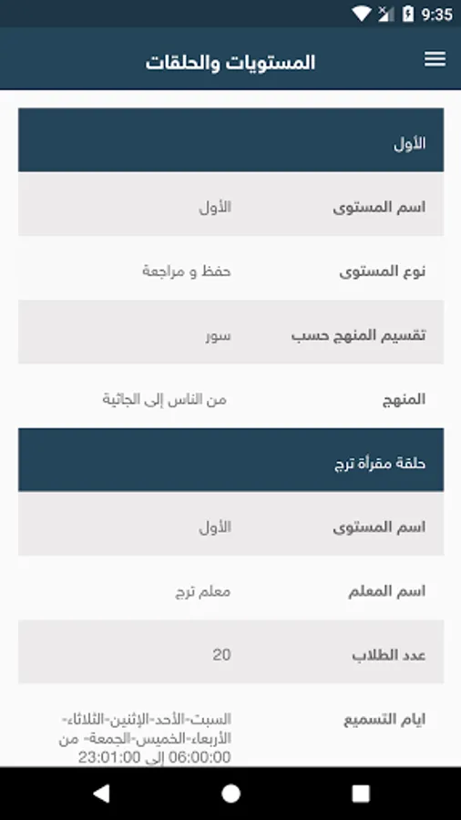 The application of (Taraj Valley) is linked to the Qaf program for managing Quranic episodes, through which the father can follow his children in memorizing, reviewing, attending, and communicating with the seminar teacher and administration, and through this program, the father or mother will be informed of the behavior of their children and their grades in the circles first hand.