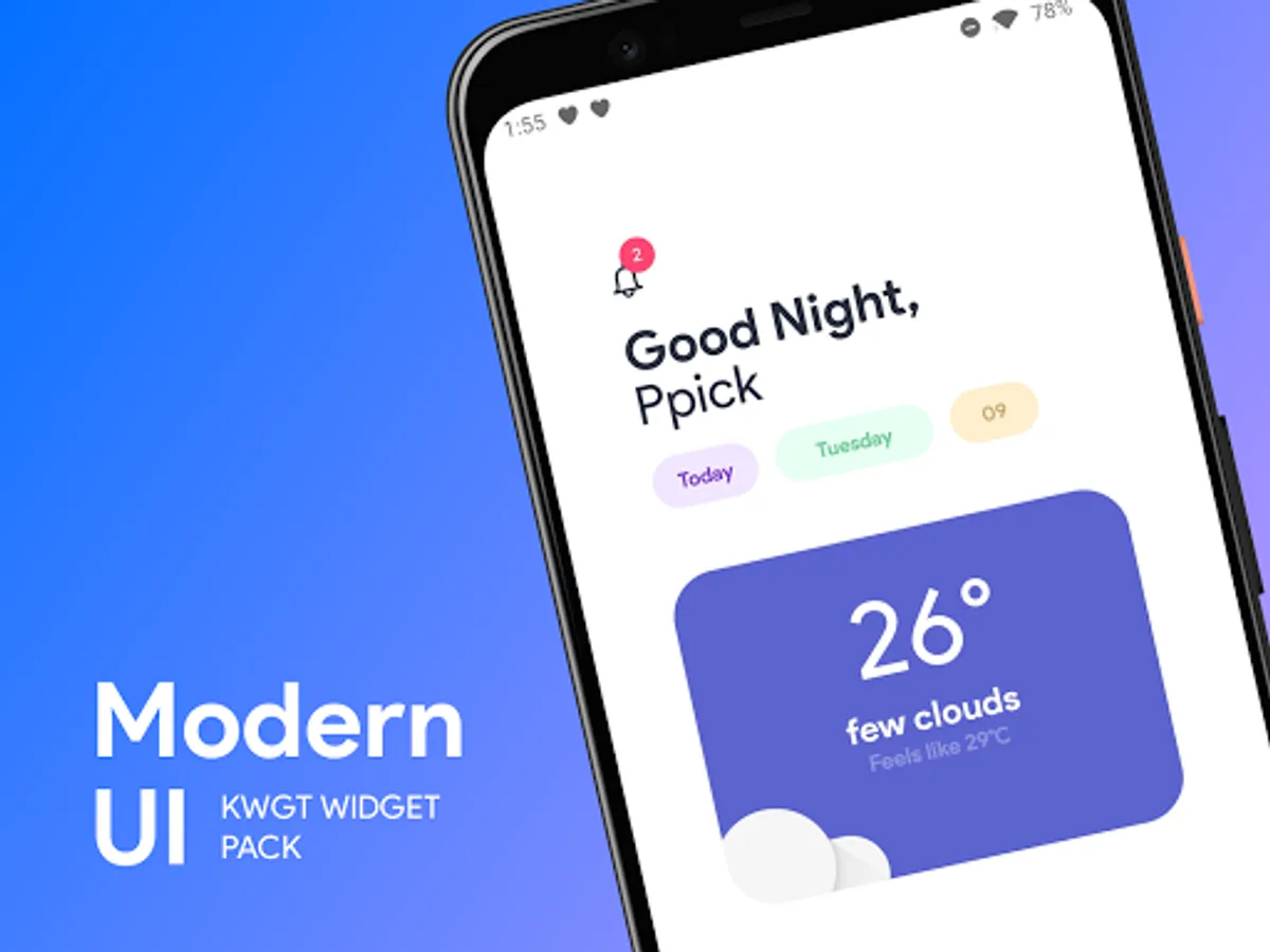 A new widgets pack with a Modern style based on Material design, beautiful and unique design. Designed for your homescreen!