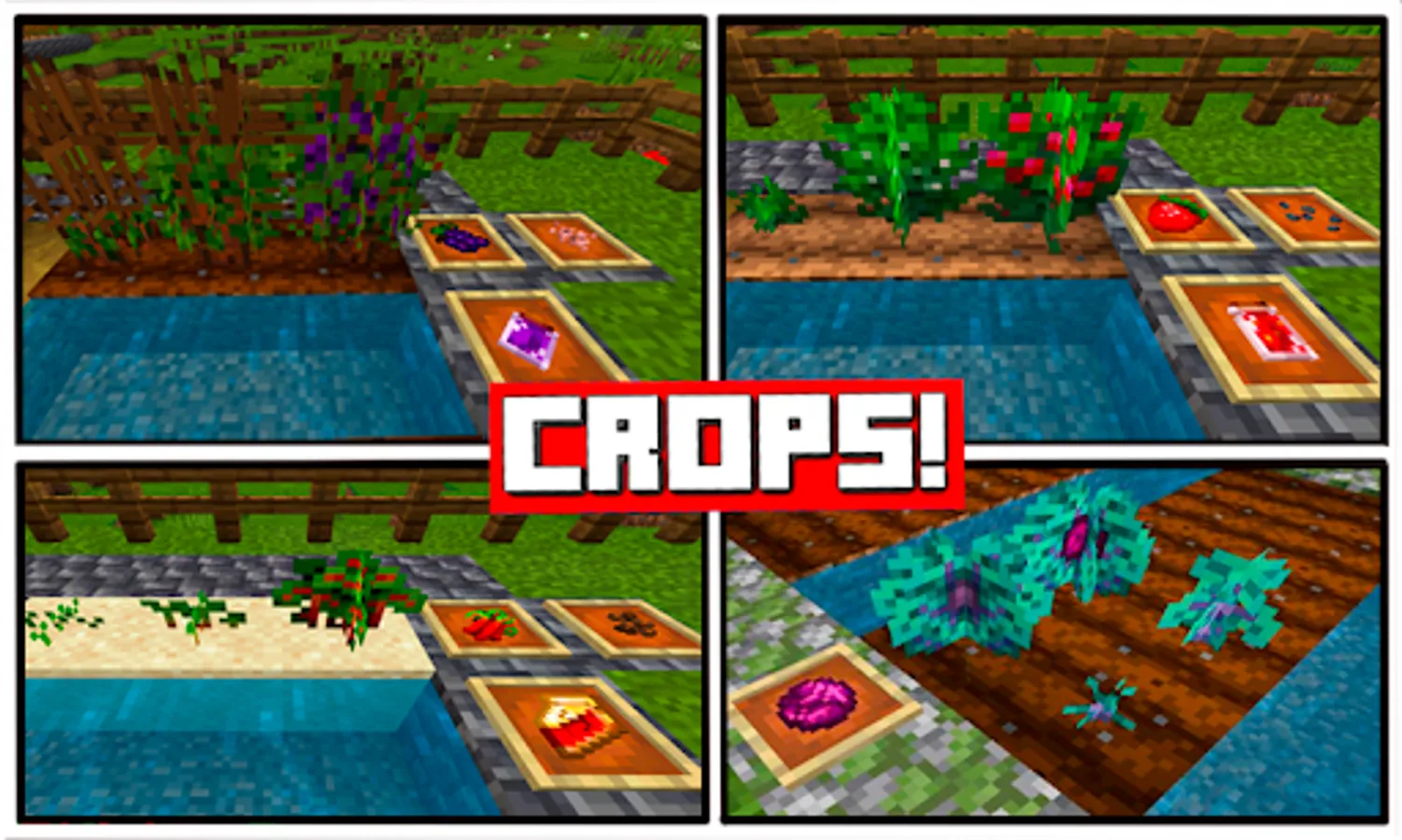 Mods Crops for Farm adds 14 new crops to your blocky world of survival and creativity.