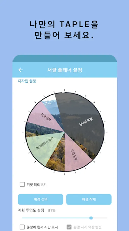 You can set the background of your favorite photo or illustration, or the background of the circle planner, such as a watch face.