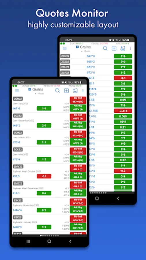 M.O.E. (MID-CO Order Entry) Mobile offers Real-time Streaming Quotes in such commodity products as: Gold, Silver, Crude Oil, Natural Gas, Corn, Soybeans, Wheat, Cattle, Hogs, Coffee, Cocoa, Currencies, Treasury Bonds and Notes, to name just a few.
