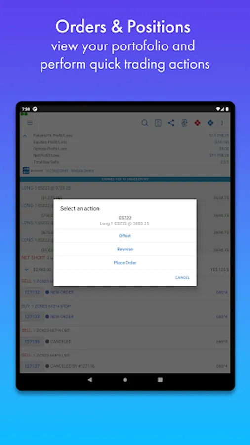 You also get advanced order entry capabilities, news, world-class charting and analytics, intuitive and easy-to-use design that it was developed with feedback from professional traders. M.O.E. Mobile delivers reliability, accuracy, usability and high performance.
