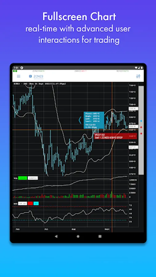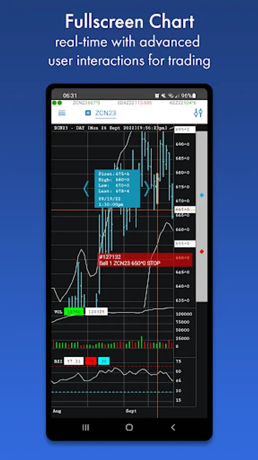 Full screen charts offering a wide selection of tools, settings and programmable indicators.