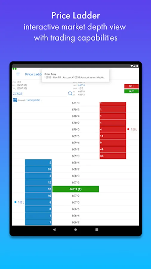 Price Ladder offers a real-time market depth view that highlights your relevant portfolio data in an interactive fashion.