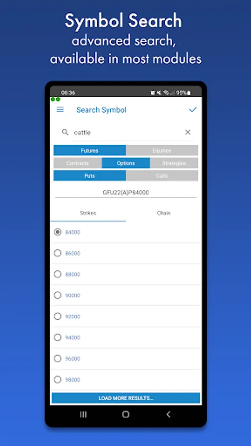Options Chain can display all the options for any futures contract with the ability to trade individual options directly from the module.