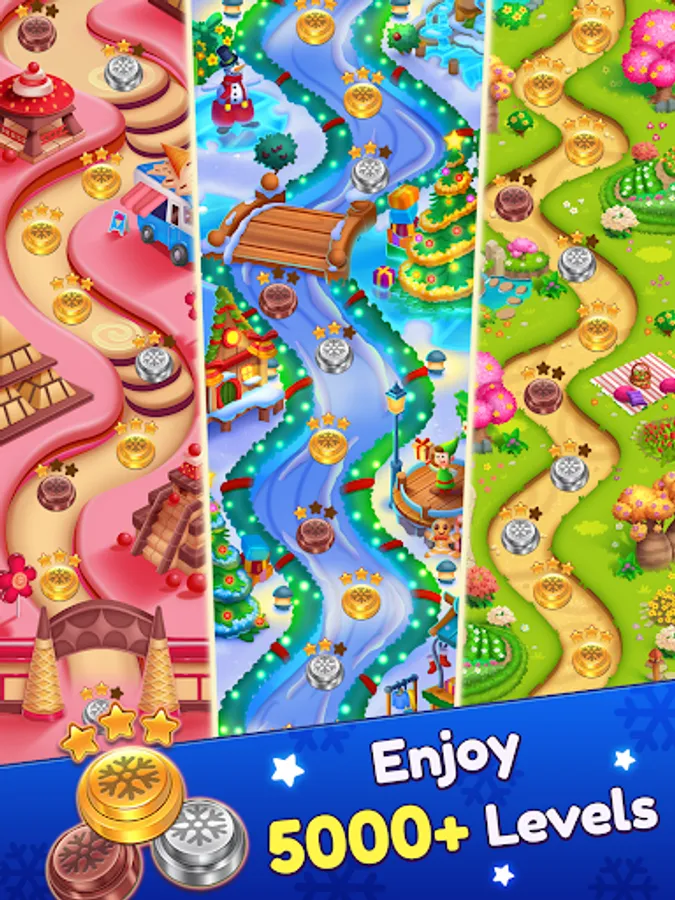 Traditional match 3 game play with relaxing Christmas music will put your mind to ease. Compete against friends and family and see who can reach the highest score and get 3 stars on every level. EARN SWEET xmas Game and play bubble shooter!