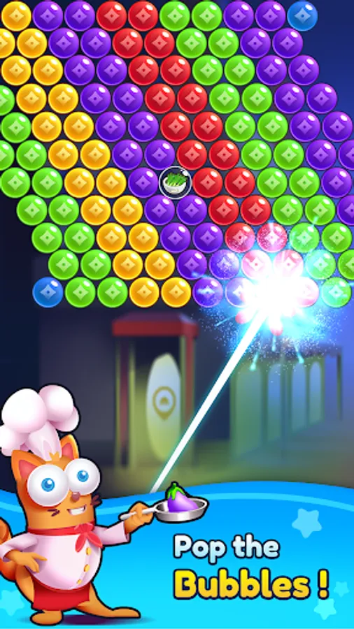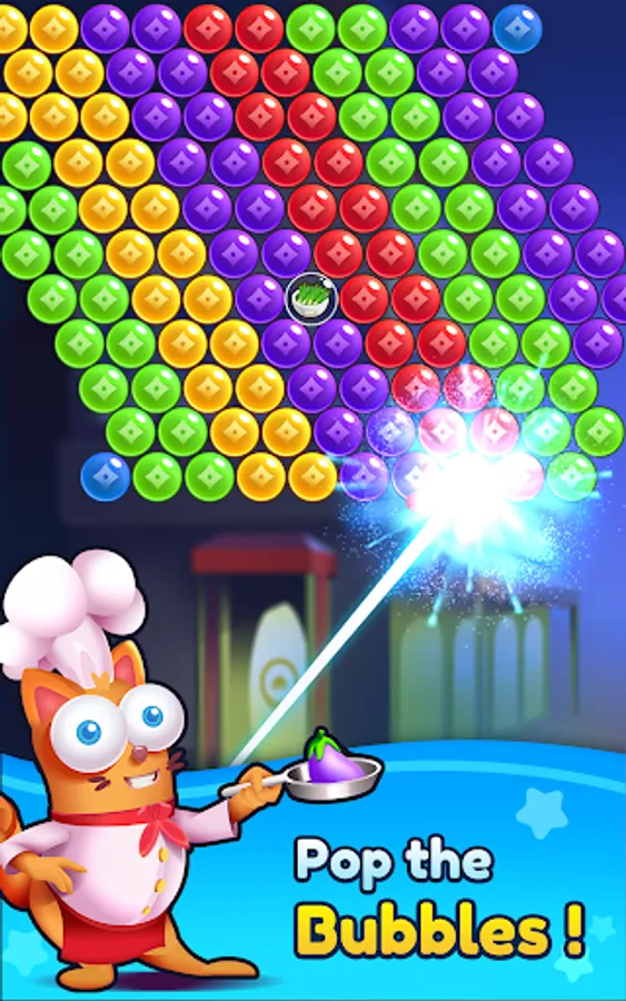 Join our cat chef on his bon voyage through the world and help him learn and master new recipes and earn the hearts of customers around the world🌎. Connect to Facebook and let your friends be a part of this bubble pop games! Compete with friends and score high to become champion of the champions in this kitty match game.