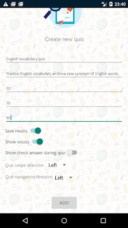 - start adding a new quiz.