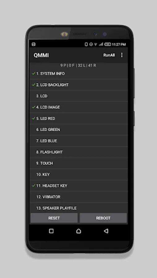 - "Qualcomm" Full test for the hardware parts like screen, speakers, sensors, etc.
