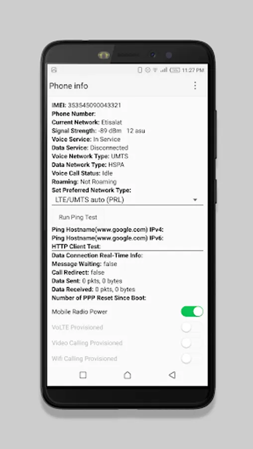 Explore internal phone network info & advanced network type control (LTE Only,2g, 3g only, etc).