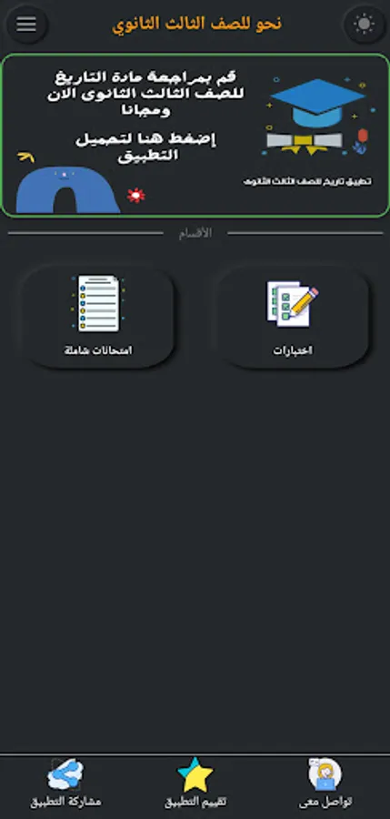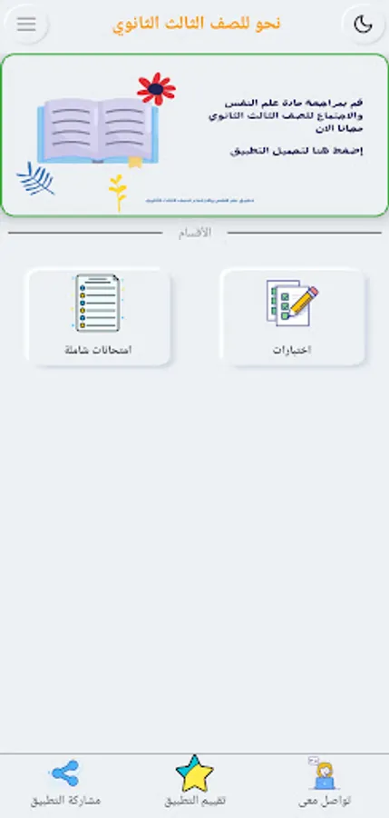 In the Nahwa application for the third grade of secondary school, you will be able to review your lessons first through a number of questions for each unit. There are also full exams for all units.