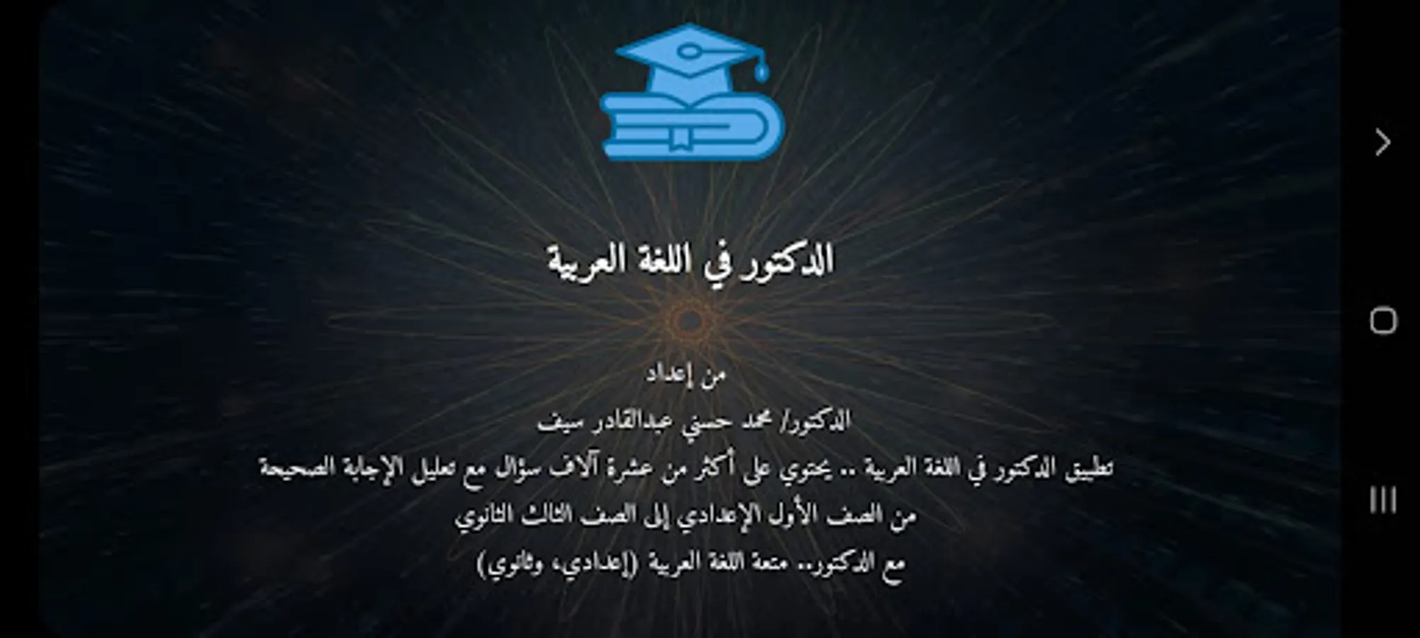 The application of the doctor in the Arabic language for the preparatory and secondary stages, by Dr. / Muhammad Hosni Abdel Qader Saif.