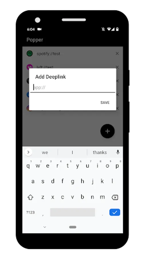 Testing proper functionality of deeplinks can often be an issue for developers. This app aims to solve that by allowing you to add as many deeplinks as you please and keep them saved. Simply click on one to launch an Intent with that deeplink.