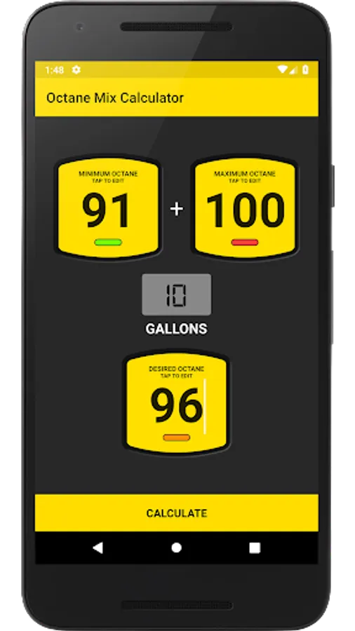 Have you ever guesstimated how much race gas you'll need to achieve the perfect octane for your vehicle? Be more precise with Octane Mix, by calculating the exact blend based on 4 variables: