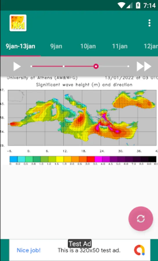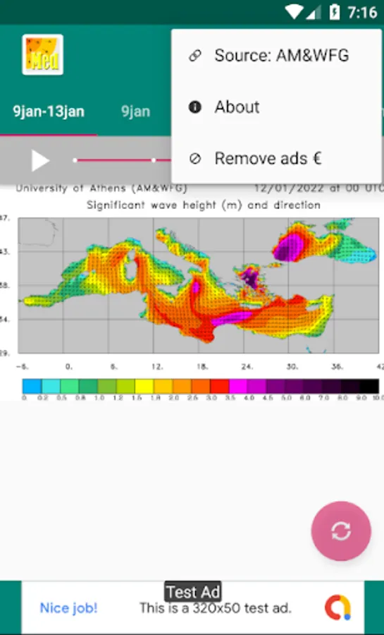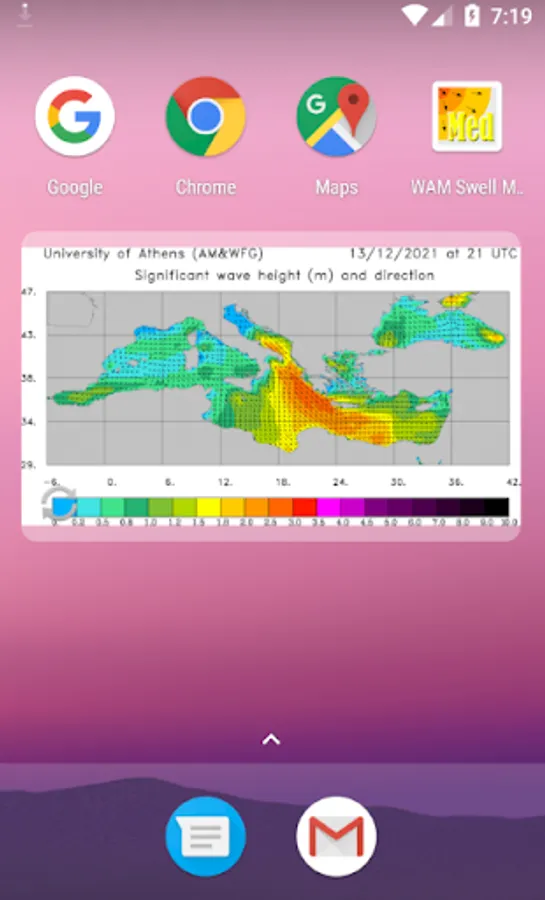 Application is primarily developed to play 5 days significant wave height forecast for Mediterranean Sea in a form of a widget. Additionally, also simple usual app was developed where you can control speed of the animation.