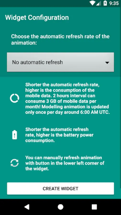 Forecast animation in the app is update daily, mostly around 6:00 AM UTC.
