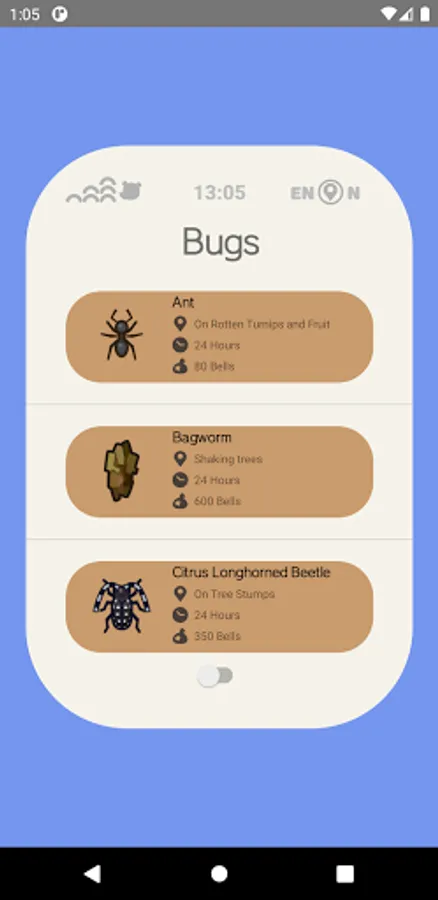 This application shows you everything you can collect, from fossils, bugs, fish to all the pieces of art and songs.