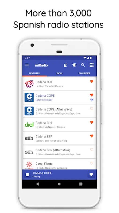 Radio Spain is an online radio application that gives you access to all FM radio stations from Spain. Listen to any Spanish radio station with just one click, totally free and without registration.