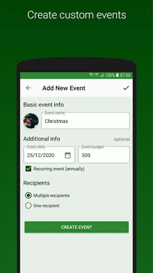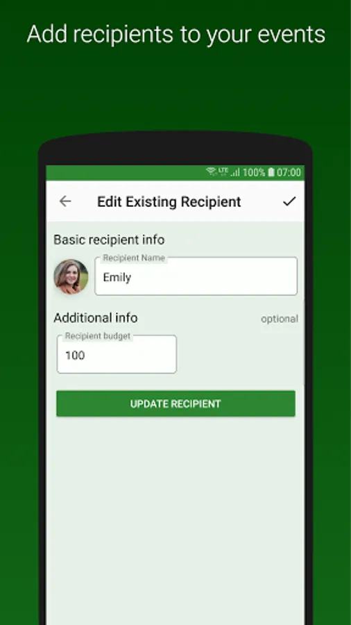 ☆ Add as few or as many recipients as necessary to your events.