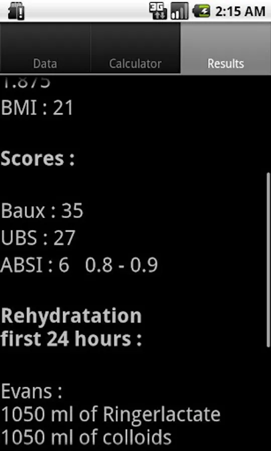 The initial management of a burn victim is sometimes a problem for practitioners for whom it is not a daily concern. It appears useful to provide them with simple tool, available on a smart phone, to gather baseline data of a burn patient : body surface area burned (from the classic tables of Lund and Browder), prognosis scores and rehydration during the first 24 hours.