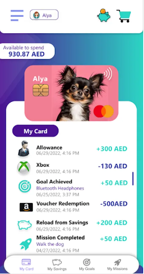 The application allows kids to gain skills on how to manage savings and dispenses using prepaid wallets. Parents incentivize kids to learn good money managmement practices by sending allowances to kids wallets, defining missions and granting rewards to kids upon mission completion.