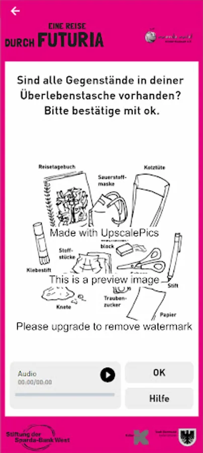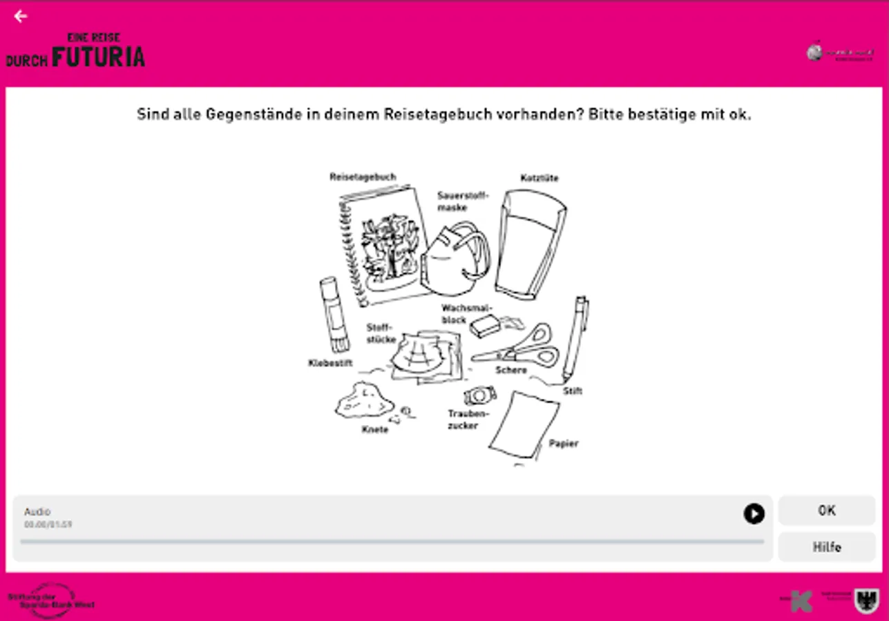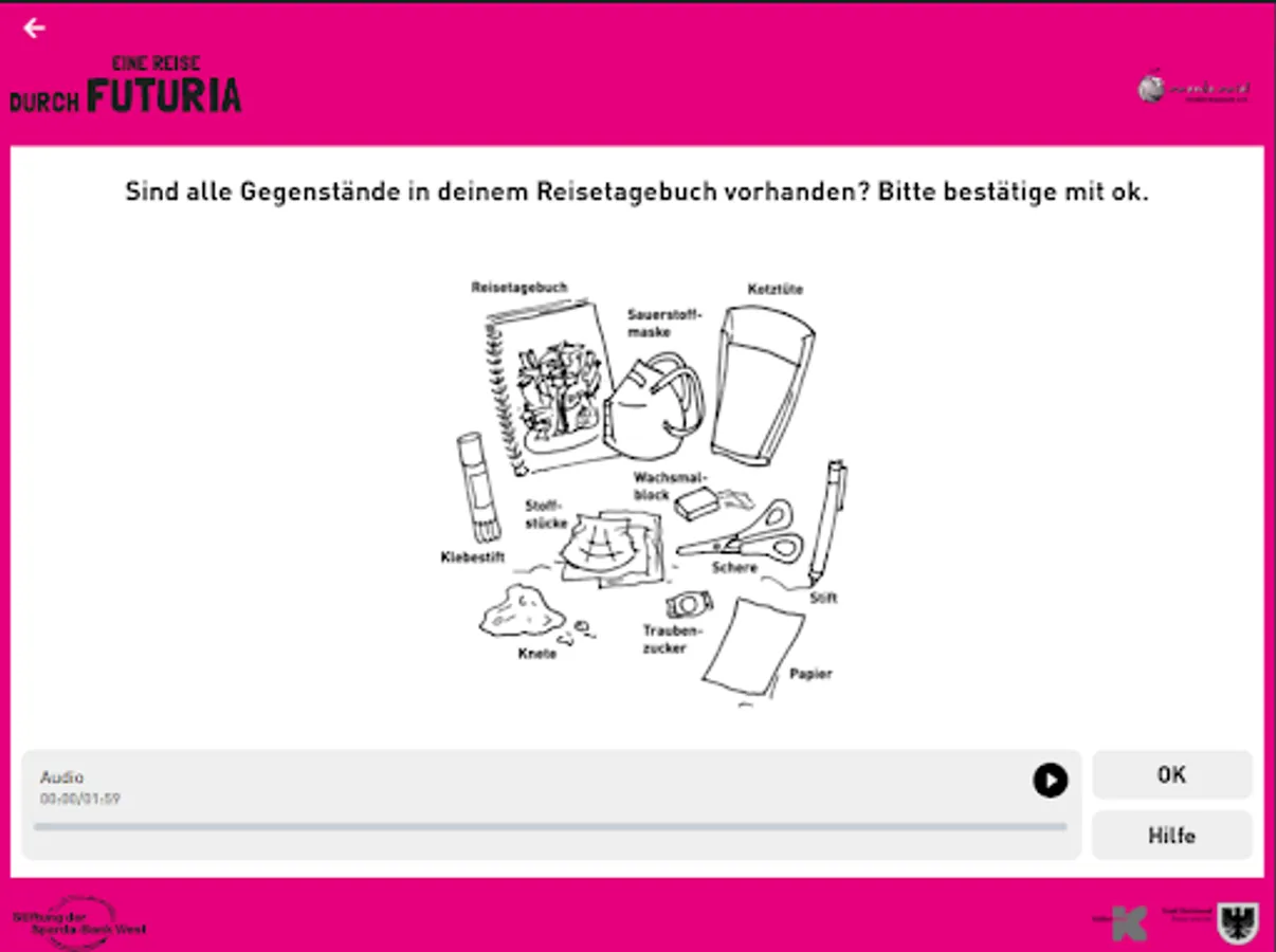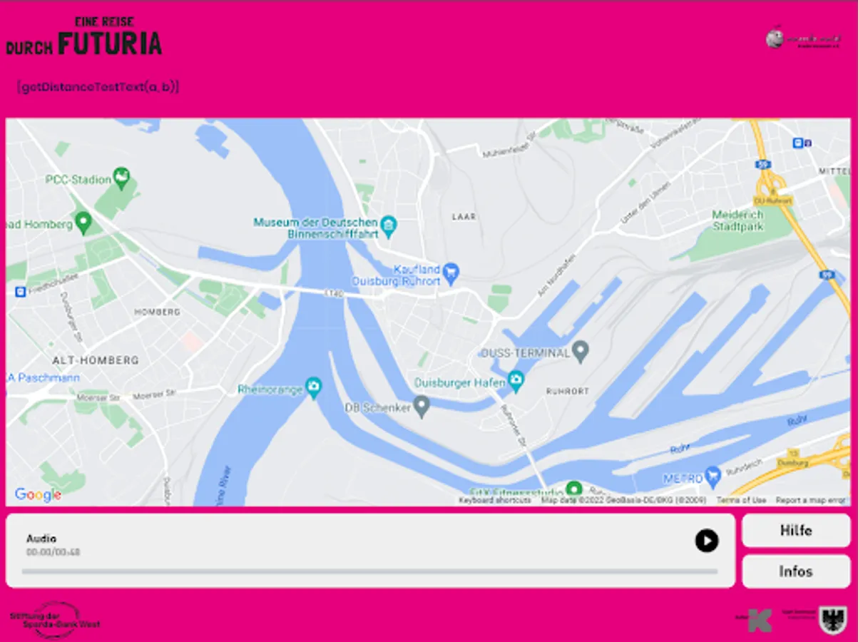 The interactive audio tour takes everyone from the age of 7 on an exciting journey into the future. An app guides the participants on their way through the Westfalenpark. Equipped with travel gear and a travel diary, all travelers are invited to explore and discover. They cross time barriers, travel effortlessly back and forth through time, discovering possible and impossible futures along the way. How will we humans live in the future? How will we feed ourselves, how will we move? Will there be too much or too little water? How will the climate change?