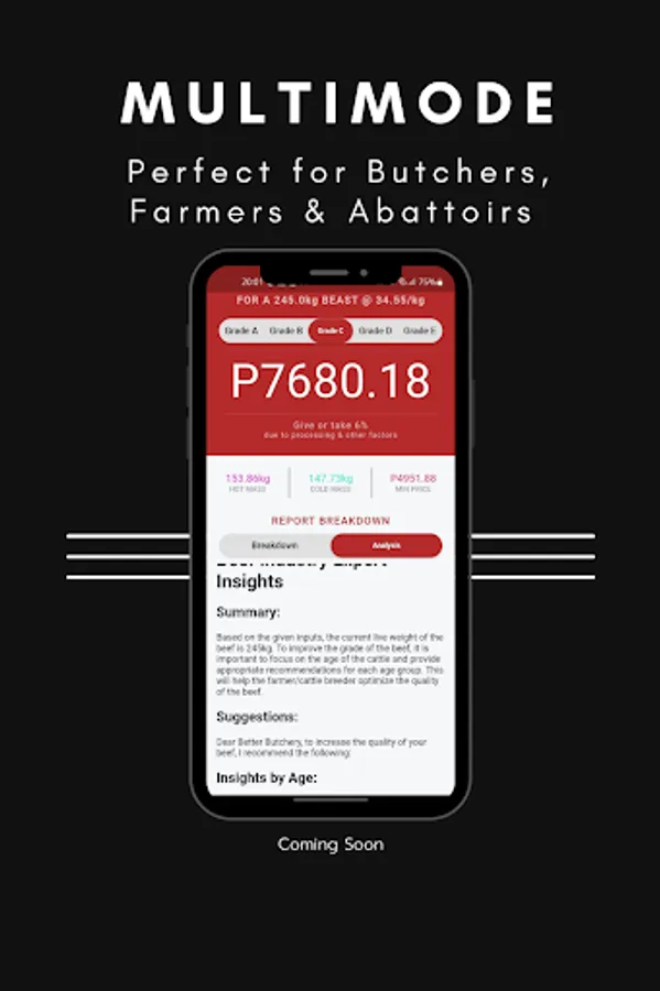 The Cowculator App is a revolutionary mobile app designed to help Farmers, Butchers & Abattoirs find an even playing field during negotiations.