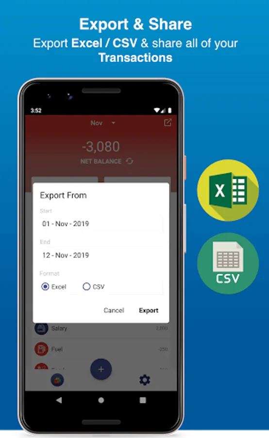 Insightful reports - Easy-to-understand graphs and financial overviews give you actionable finance insights. You can get your income and expenses report in CSV & Excel format.