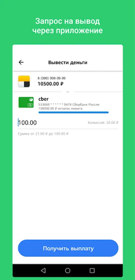 Instant round-the-clock payments to taxi drivers to any bank cards or Qiwi wallets when working with aggregators: Yandex.Taxi, Uber, Gett, Citymobil, Bolt (Taxify), DiDi (DiDi).
