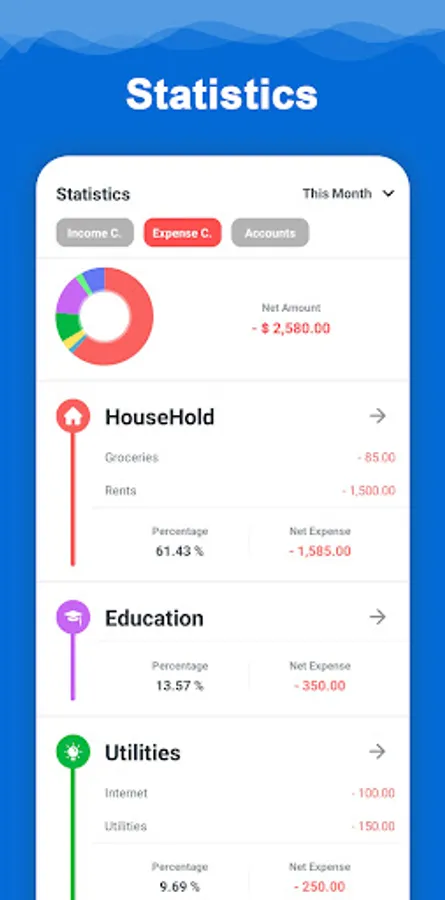 With My Budget's analyzable statistics, you can gain valuable insights into your spending patterns and financial behavior. Visualize your expenses, track your income sources, and identify areas where you can make adjustments to optimize your budget.