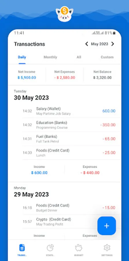 One of the standout features of My Budget is the ability to set spending limits for your expense categories and accounts. Create budgets and stay within your desired limits, ensuring that you always maintain a healthy financial balance. It's like having a personal budgeting assistant in your pocket.